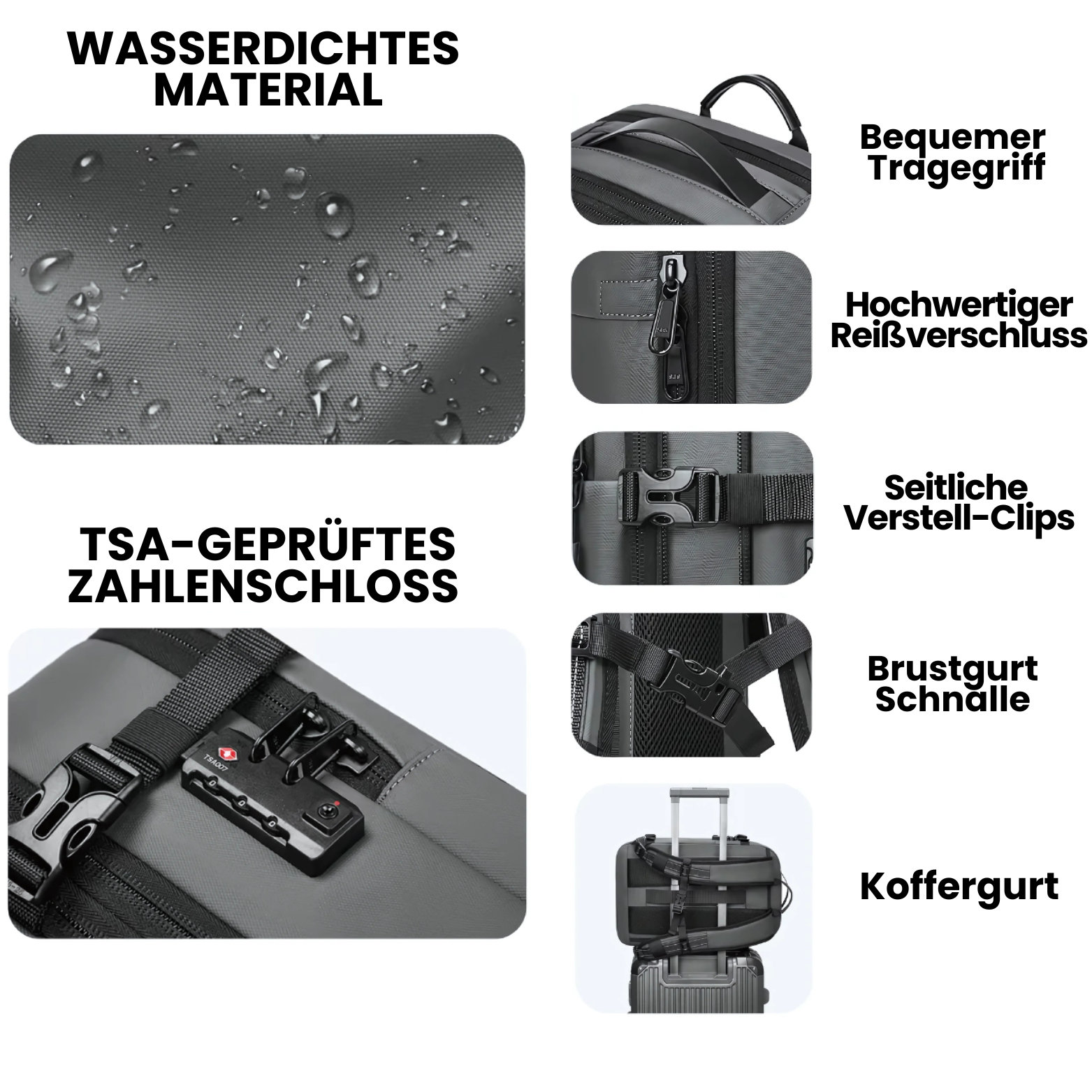 Der Expandura® Pro ist als Handgepäck zugelassen und damit der perfekte Begleiter für stressfreies Boarding und entspanntes Reisen. Er entspricht zudem den gängigen Handgepäck-Maßen vieler Airlines wie Lufthansa, SWISS, Austrian, Eurowings, Condor und Ryanair.
